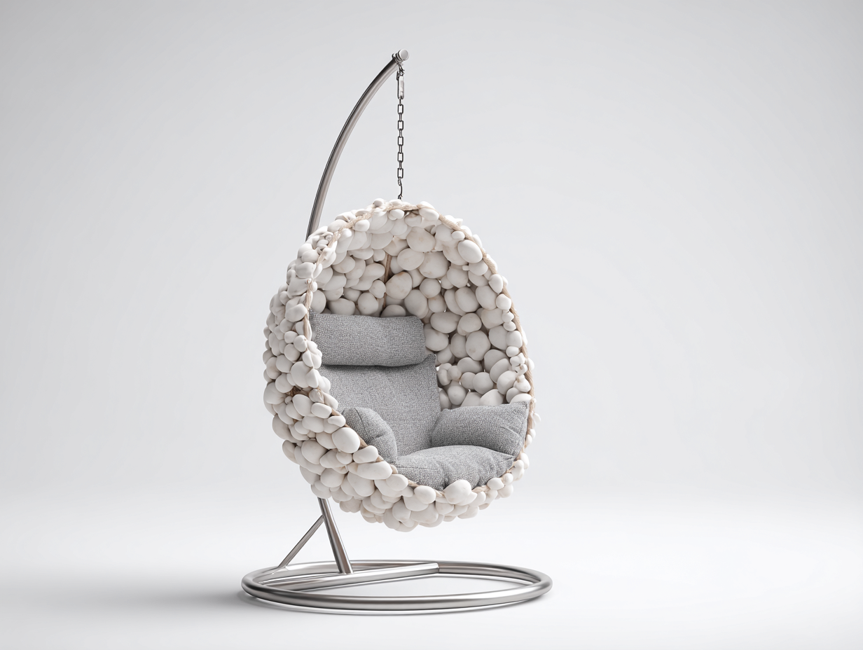 Sillones colgantes de metal y tela 105x95x195 cm blanco y gris para sala de estar - diseño moderno