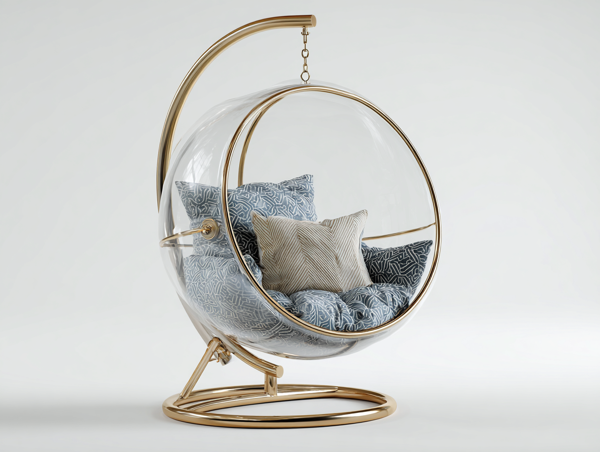 Sillones colgantes acrilico y acero 105x105x195 cm - transparente-dorado-beige - diseño moderno para interior y terraza