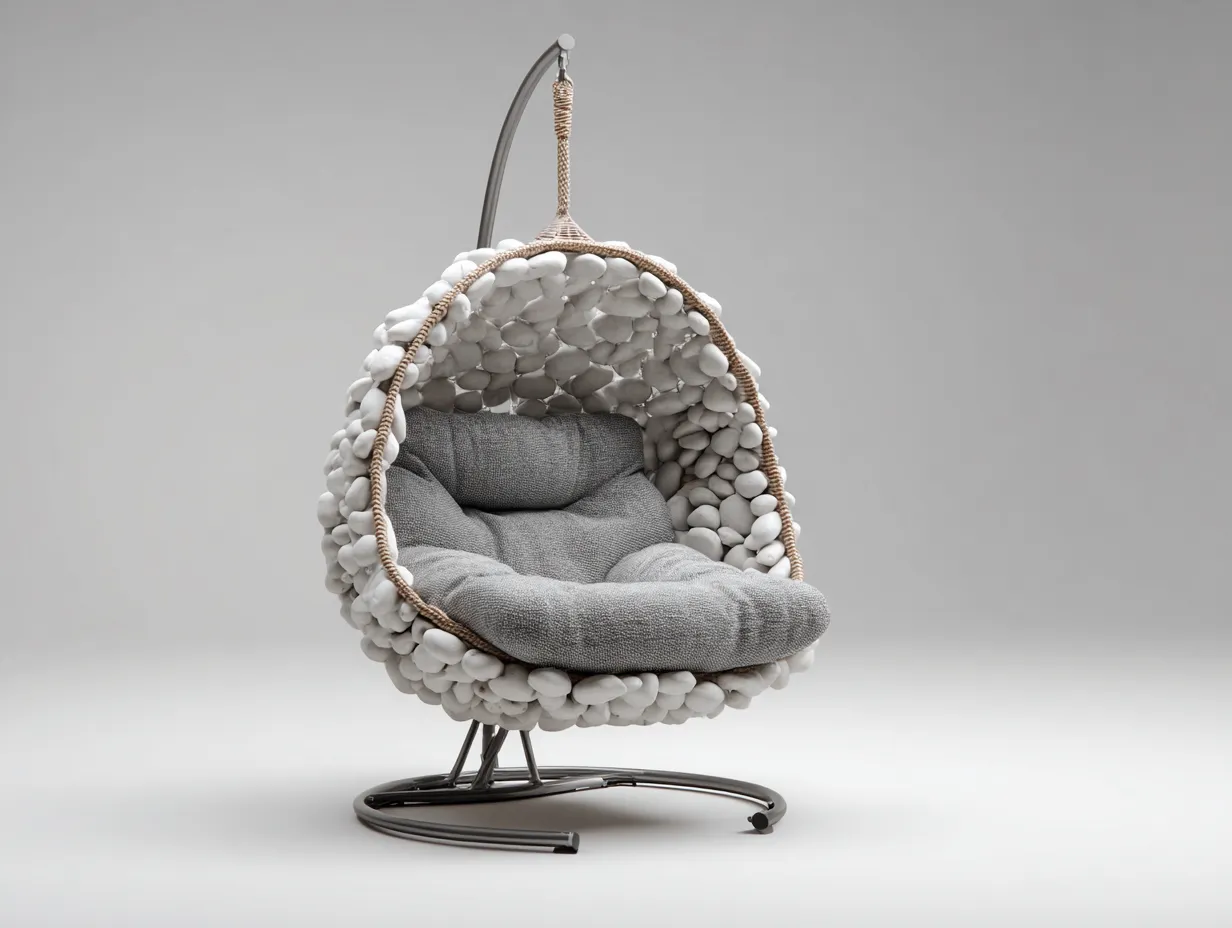 El diseño colgante permite un ligero balanceo que favorece la relajación. La estructura envolvente proporciona una sensación de privacidad y confort, mientras que el cojín acolchado mejora la experiencia de descanso en el jardín.