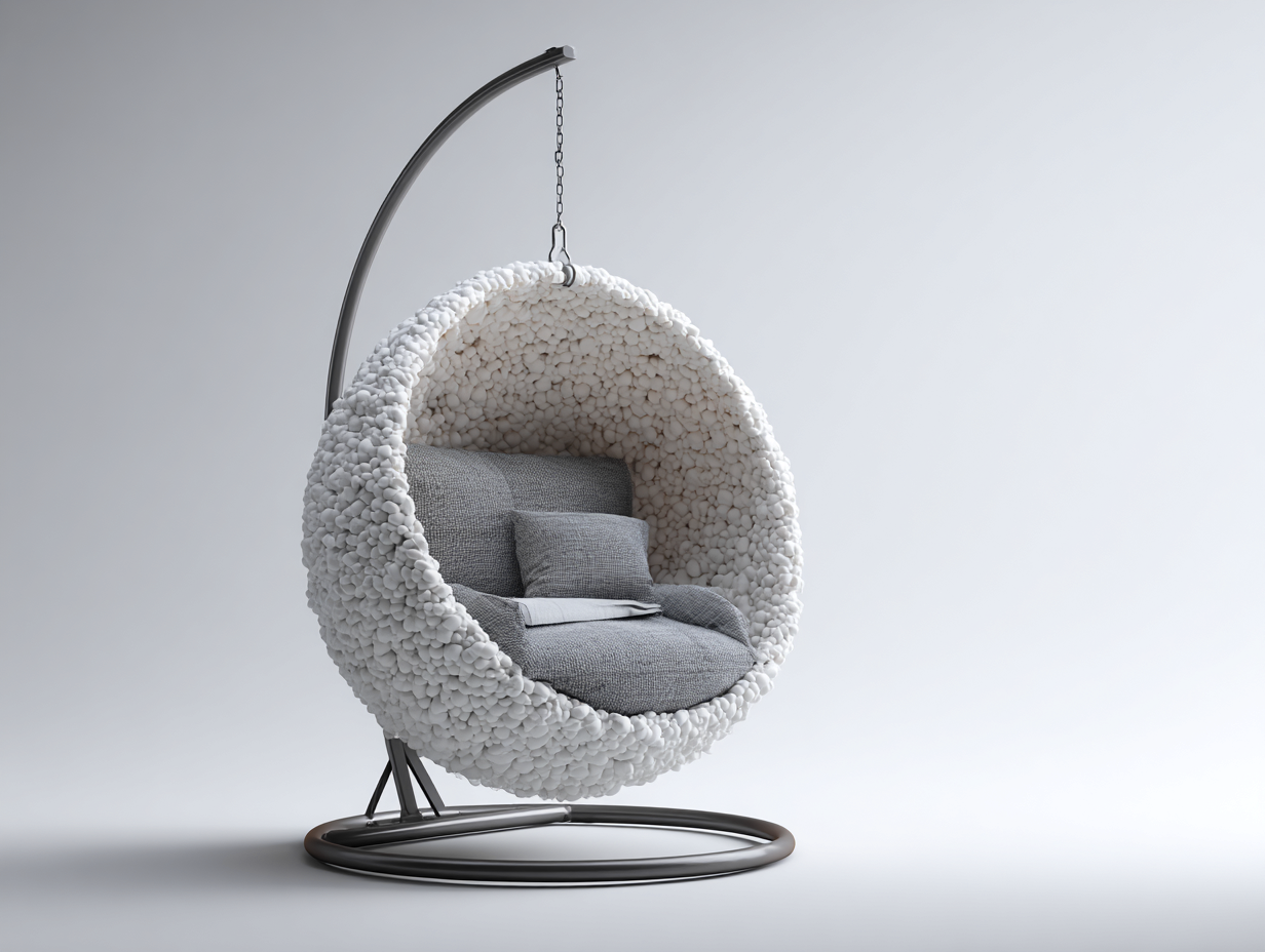El sillón colgante cuenta con un diseño tipo cápsula que crea un espacio acogedor para descansar leer o relajarse. La base estable permite colocarlo fácilmente en diferentes áreas del hogar sin necesidad de fijarlo al techo.